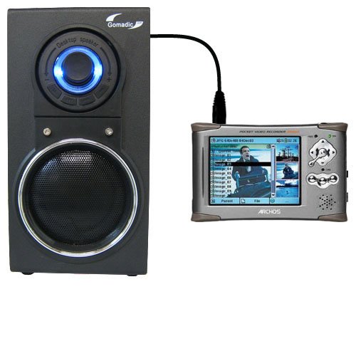 Need a way to enjoy music from your Archos AV440 without being limited to a pair of headphones? With Gomadics new High Output Powered Portable Amplified Audio Speaker; you (and all your friends) can enjoy music from your AV440 anywhere! Whether you are cooking in the kitchen; sitting around the patio table with friends or dancing in the basement; Gomadics amplified speaker will keep the tunes flowing. Equipped to play equally well using its internal high capacity rechargeable batteries (2 x 1000mAh) or with the included AC wall power supply; our portable speaker is ready to go. Optionally; two memory card slots are integrated into the back of the speaker which can be loaded with MP3 files for direct play without using your AV440 at all. Customers are amazed at the amazing sound quality (which can go surprisingly loud) that comes out of such our stylish and compact speaker (only a little over 8" in height). An absolute must have accessory for anyone that wants to listen to enjoy music from their Archos AV440 without being tethered to a pair of headphones. Like all Gomadic products; our Amplified Audio Speaker is also backed by our lifetime warranty.